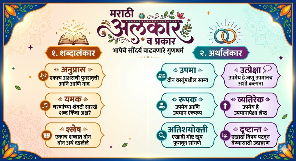 मराठी अलंकारांचे प्रकार : (Marathi Alankar Types)