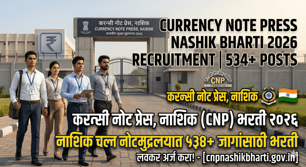 Currency Note Press Nashik Bharti 2026: नाशिक चलन नोट मुद्रणालयात 534 जागांसाठी भरती